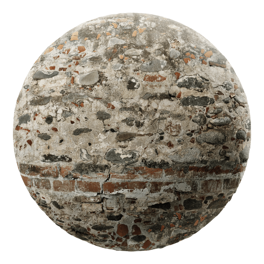 Damaged Layered Brick and Stone Wall Texture